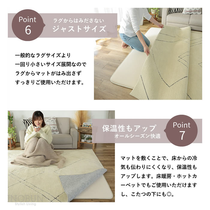 ベルベル ラグマット アイボリー 190cm x 190cm 抗菌・防臭加工 消臭加工 HOT対応 抗ウイルス 新生活 日本製