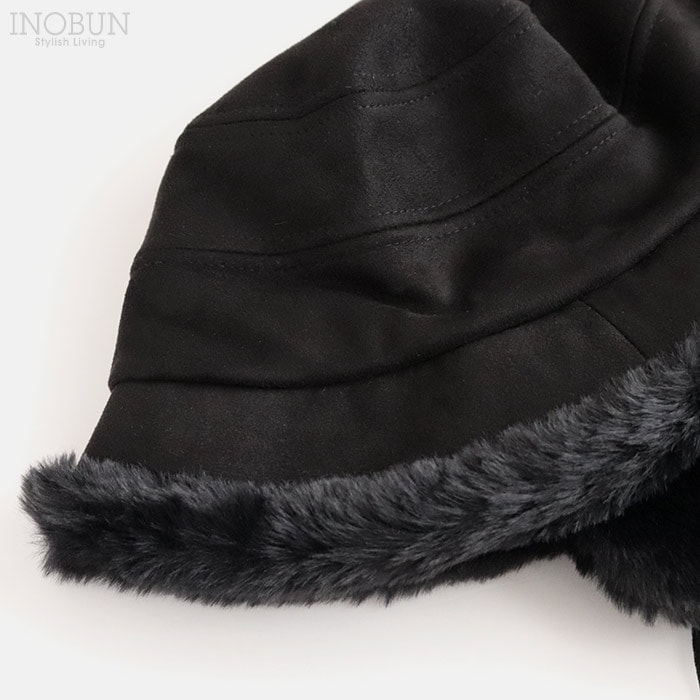 • ファーイヤマフバケット ハット ブラック 秋冬 帽子 バケットハット 耳当て付き
