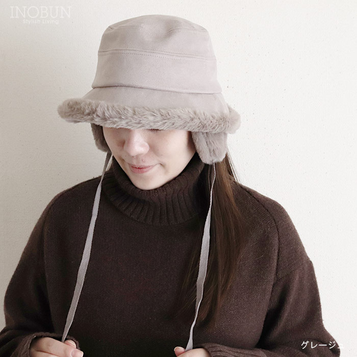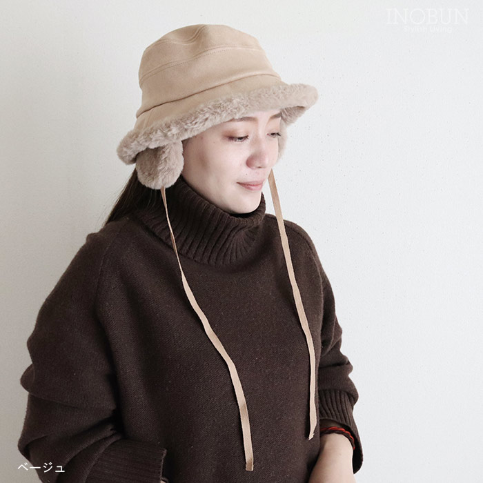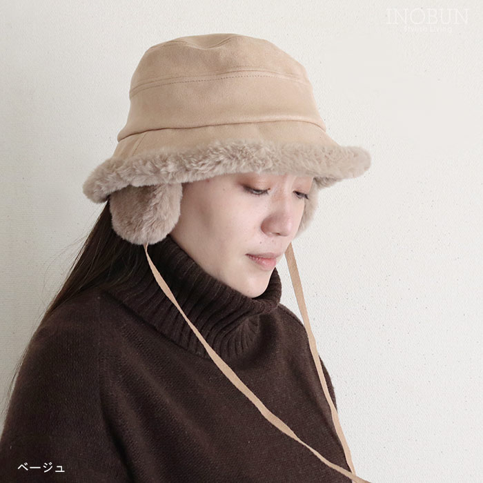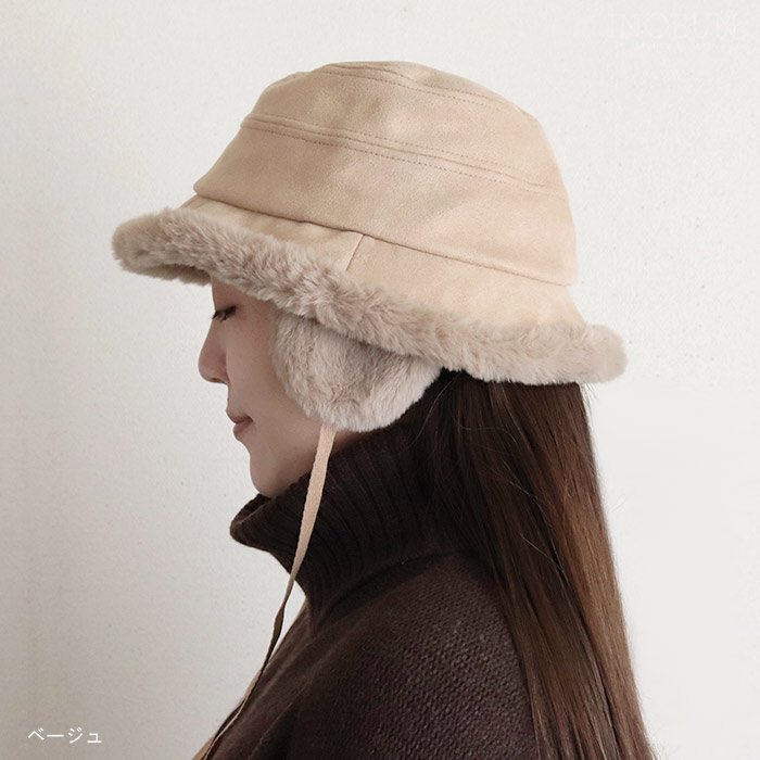 ファーイヤマフバケット ハット ブラック 秋冬 帽子 バケットハット 耳当て付き