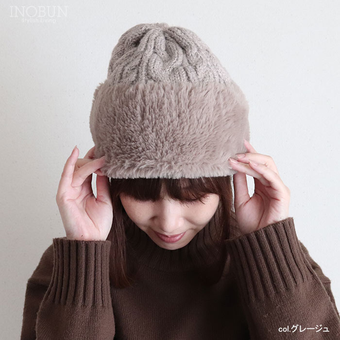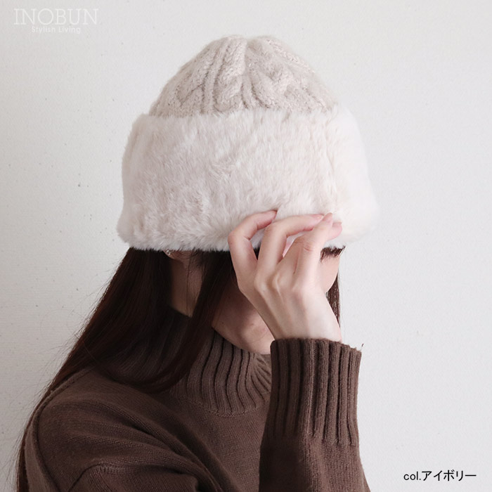 ファートーク風スフレワッチ ブラック ニット帽 ニットキャップ ビーニー ファー 帽子 冬 防寒