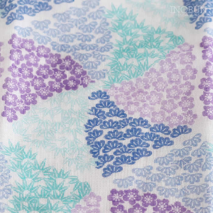 • 白雪 友禅染てぬぐい 松竹梅 ブルー 白雪てぬぐい 30 x 90cm