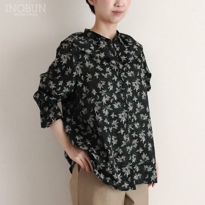 Soldout 【再入荷予定なし】イノブン別注 Vent d'ouest リバティ 丸襟ギャザーブラウス Poppy&Daisy/UE パープル系 半袖 38サイズ ヴァンドウェスト