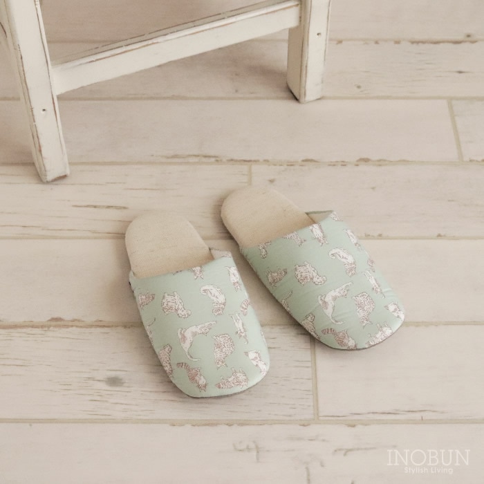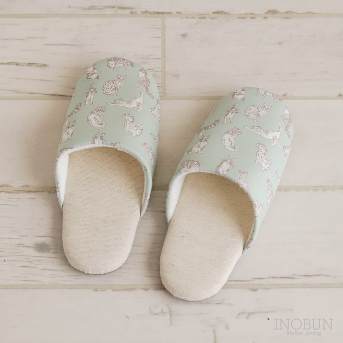 • 【在庫限り終了】リバティプリント スリッパ 02 ミャオウ ミント Meow フローレットロンドン