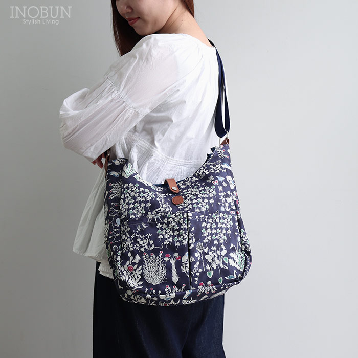 Coupole リバティ アクリルショルダーバッグ マチ幅広 Strawberry Thief/LE レザーブラック PVCコーティング 日本製 クーポール