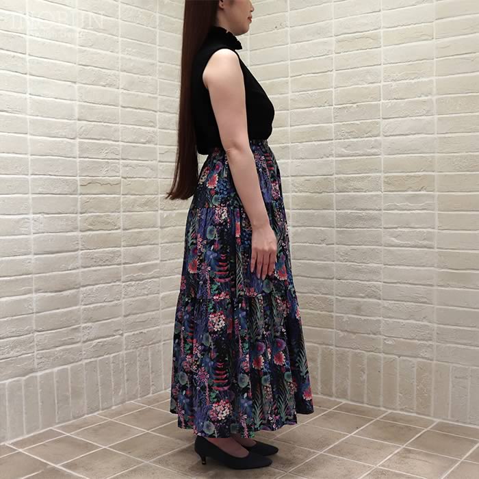 Soldout 【再入荷予定なし】Vent d'ouest リバティプリント切り替え 半袖ワンピース Patrick Gordon x ブラック 38サイズ ヴァンドウェスト