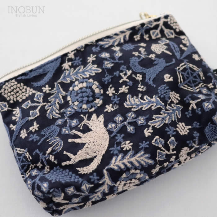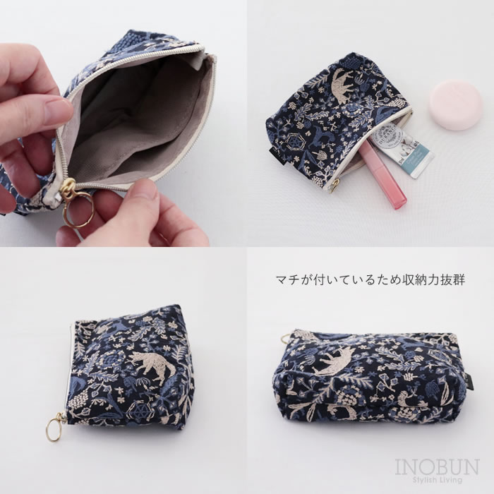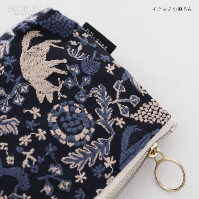 ten to sen BASICポーチ キツネノ小道 ネイビー 点と線模様製作所生地 化粧ポーチ 底マチ 内ポケットあり