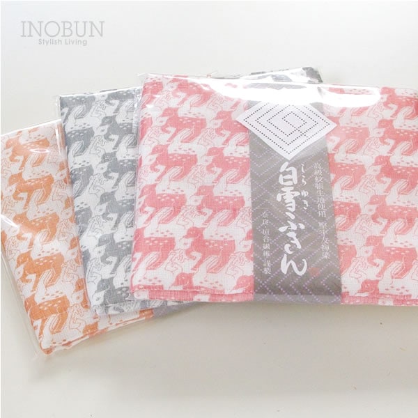 白雪ふきん 友禅染 鹿 バンビ 師走 30 x 40cm オレンジ キャラメル