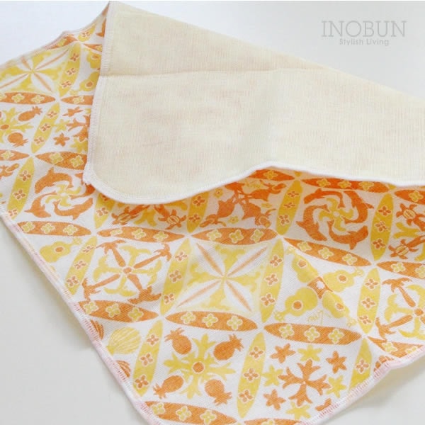 • 【在庫限り終了】白雪 友禅染はんかち ハワイアンキルト 白雪はんかち 30 x 30cm オレンジ マンゴー