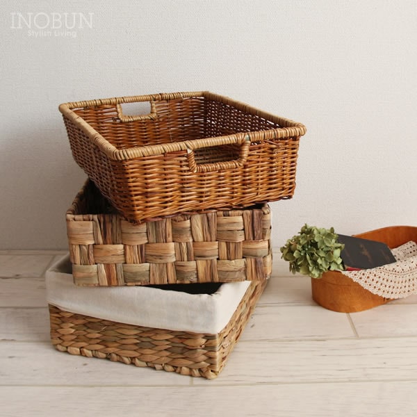• 【在庫限り終了】ウォーターヒヤシンス製 かごバスケット 平編み カラーボックス対応 ハーフサイズ 北欧 ナチュラル