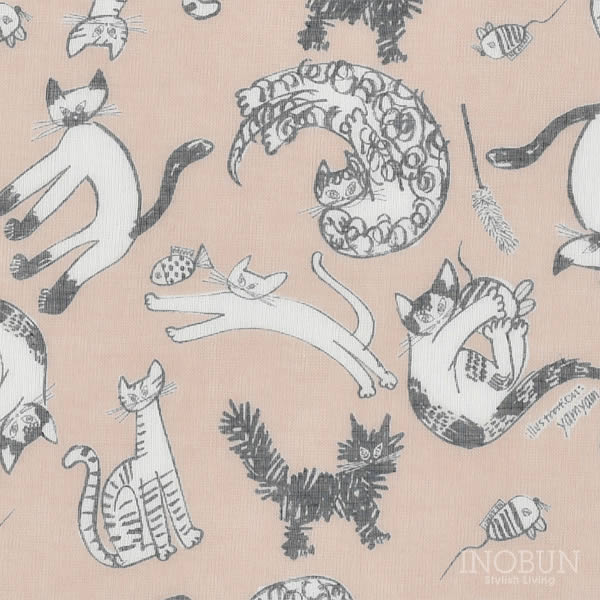 • 白雪 湯上りタオル 友禅染 meow meow meow バスタオル ベージュ