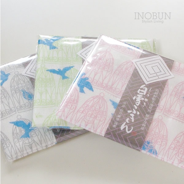 白雪ふきん 友禅染 青い鳥 30 x 40cm グレー ぎんいろ