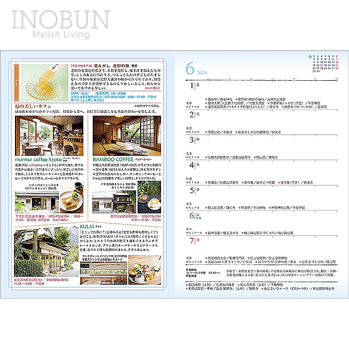 2026年 スケジュール帳 京都手帖 【京都限定版】 ウィークリー 木版画柄 雨/町家 観光ガイド マップ付き 12月始まり
