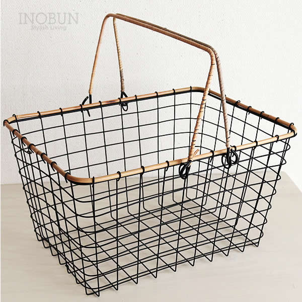 【在庫限り終了】ワイヤー 藤 かごバッグ 持ち手付き 収納バスケット 店内かご 網かご