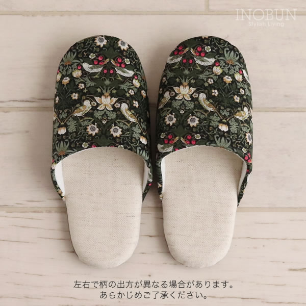 Soldout 【再入荷予定なし】リバティ スリッパ 02 ルームシューズ ストロベリー・シーフ グリーン 約23~25cm Strawberry Thief フローレットロンドン 新生活