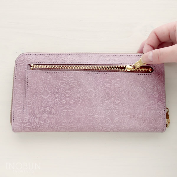• 本体の外側裏面にはちょっとした小銭や鍵、カードを入れられるファスナーポケットがあります。<br>