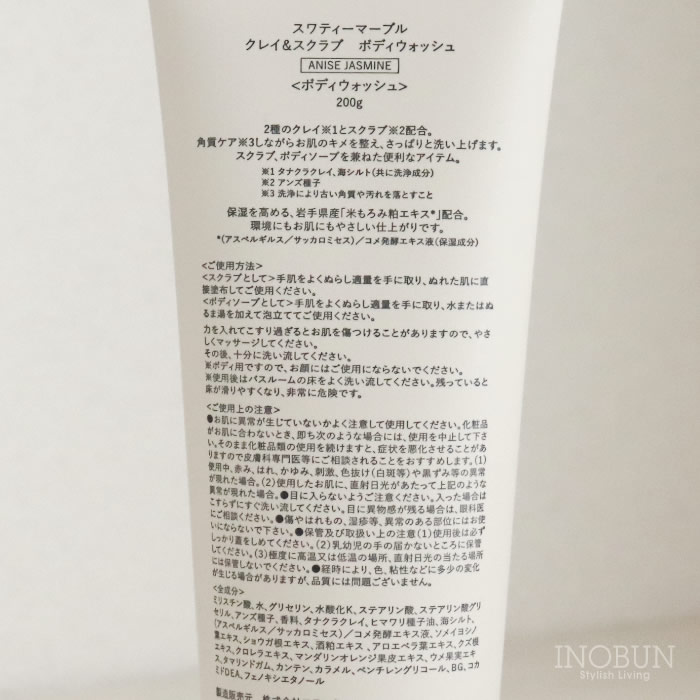 【在庫限り終了】SWATi スワティ クレイ&スクラブボディウォッシュ ティー グラス マーブル レーベル ボディケア 日本製