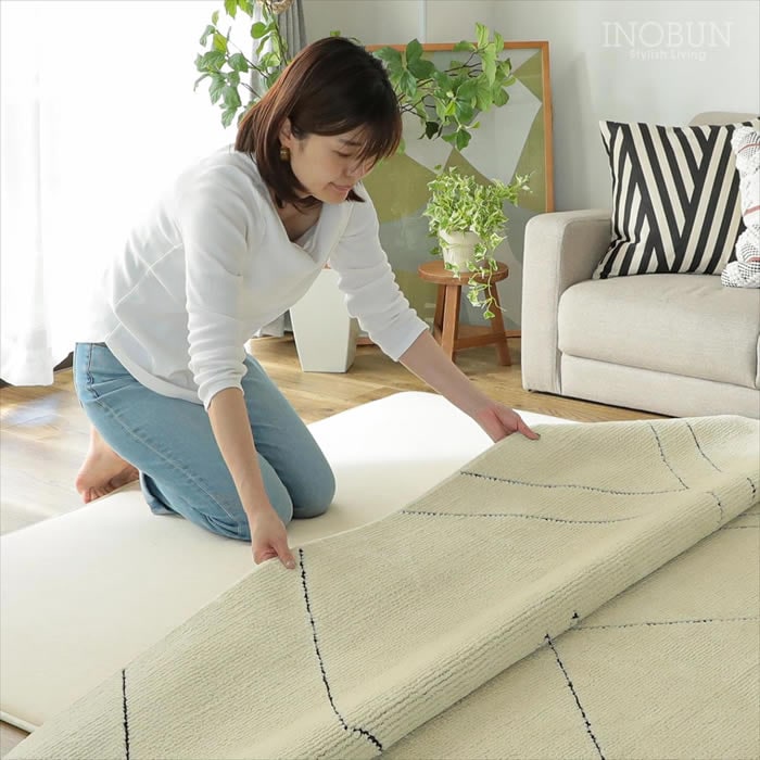 トラム コットン ラグマット 190cm x 240cm 洗える 洗濯機OK 抗菌・防臭 防虫 床暖房対応 すべり止めプレゼント 日本製