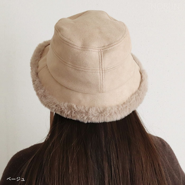 • 【在庫限り終了】ファーイヤマフバケット ハット ベージュ 秋冬 帽子 バケットハット 耳当て付き セール