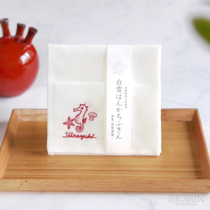 Soldout 【在庫限り終了】白雪はんかちふきん 30 x 30cm イノシシ ご挨拶 ギフト yamyam 刺繍