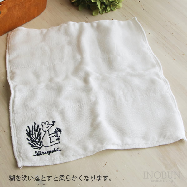 【在庫限り終了】白雪はんかちふきん 30 x 30cm ハリネズミ yamyam 刺繍 ご挨拶 ギフト