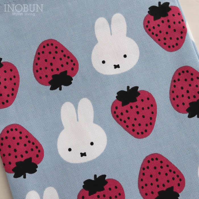 • ミッフィーといちごが両面にたくさん描かれています。優しい色合いのブルーが、可愛さもあり落ち着いた印象です。