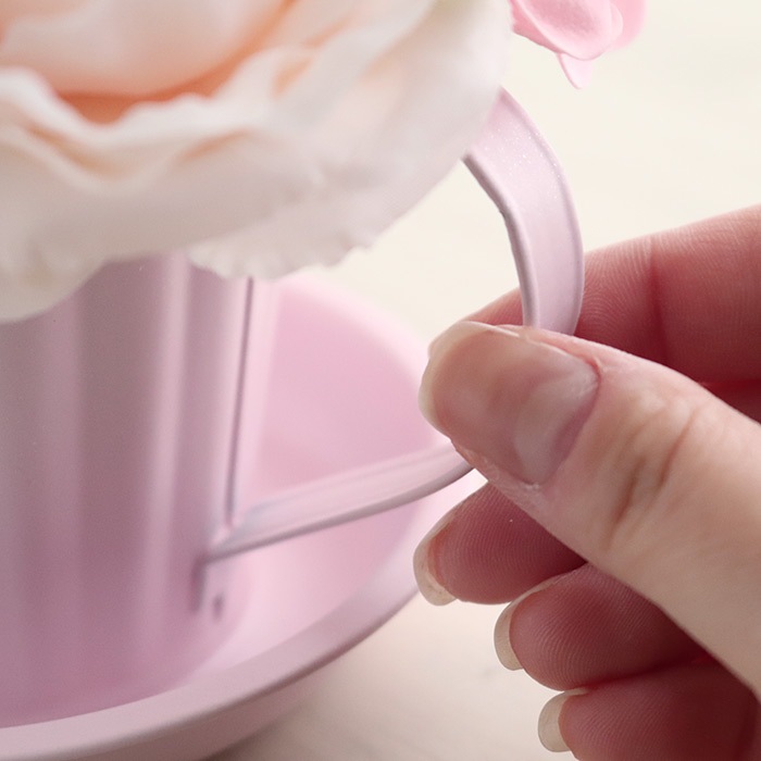 ピンキーマグソープフラワー パッションピンク ローズ・ラナンキュラス 透明BOX入り カップ&ソーサー型ベース プレゼント 卒業式 入学式 お祝い