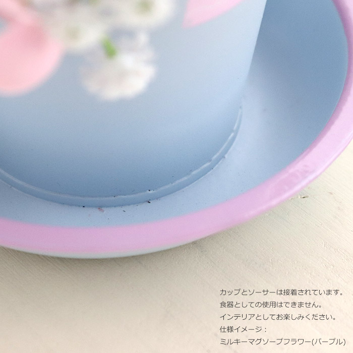 ミルキーマグソープフラワー パープル ピオニー・カスミソウ・カーネーション 透明BOX入り カップ&ソーサー型ベース プレゼント 卒業式 入学式 お祝い