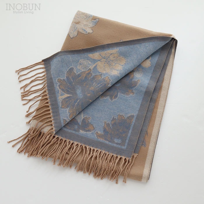 リバーシブルストール ベージュ イノブンオリジナルネームタグ付き マフラー やわらか 薄手 大判 セール