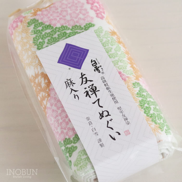 白雪 友禅染てぬぐい 松竹梅 ピンク 白雪てぬぐい 30 x 90cm