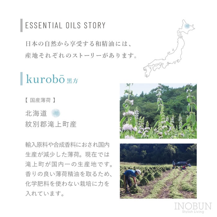 hana to mi ハナトミ アロマティックディフューザー kurobo クロボウ 105ml ハッカ 天然精油 花粉 日本製