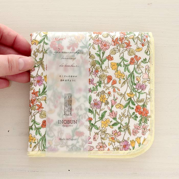 HOKKOH x LIBERTY パイルハンカチリカルドフラワー Ricardo イエロー イノブンオリジナル 日本製 北高 ギフト