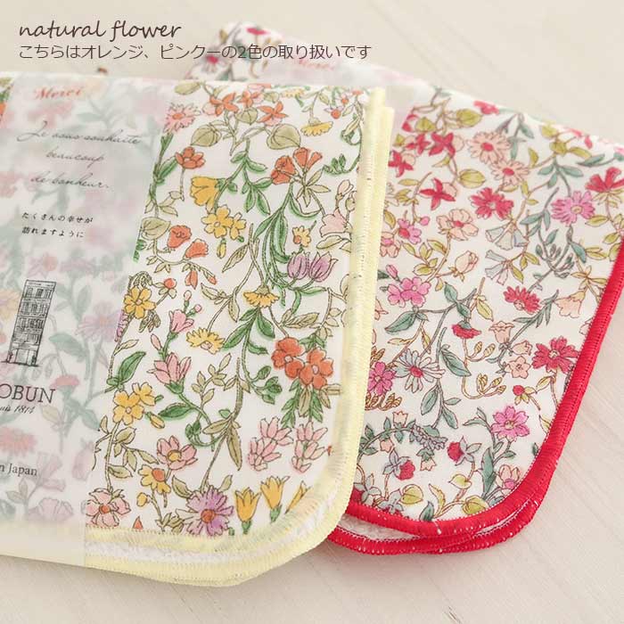 Soldout 【再入荷予定なし】パイルハンカチ ナチュラルフラワー ピンク イノブンオリジナル 日本製 北高 ギフト