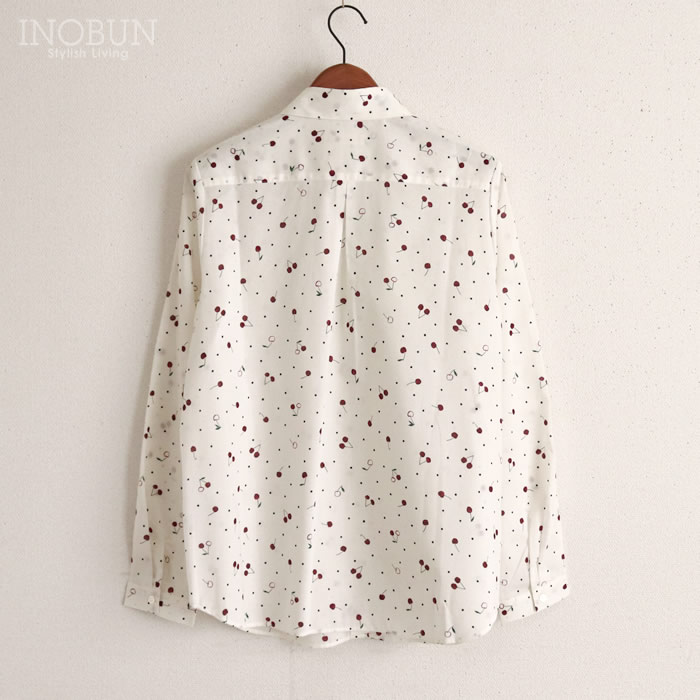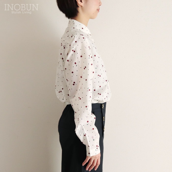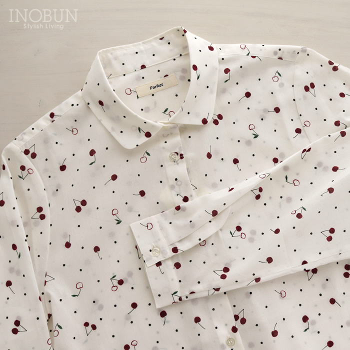 Soldout 【再入荷予定なし】Parkes 60ローン チェリードット小丸衿ブラウス 長袖 ネイビー パークス 2025年春夏新作