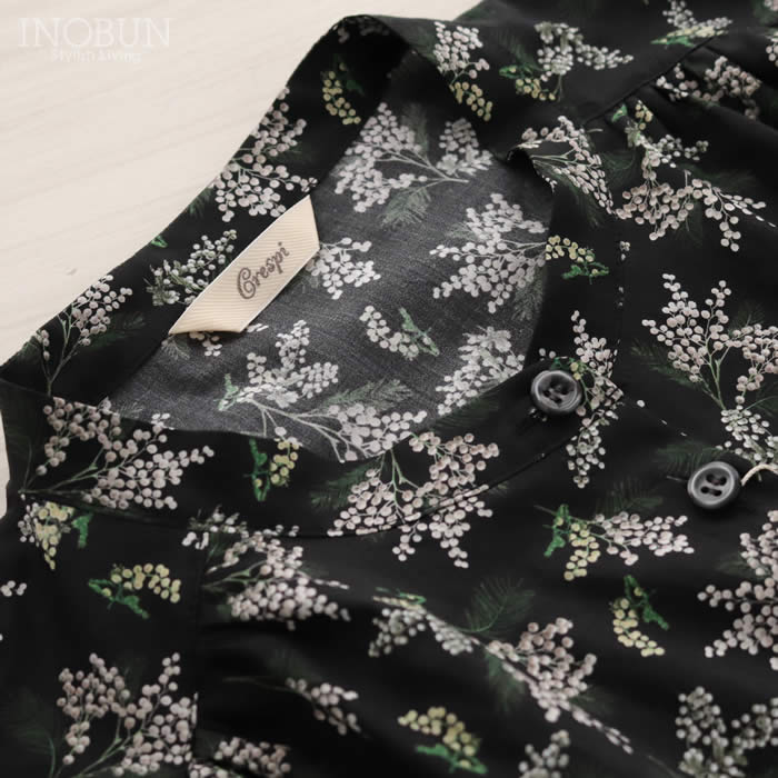 Soldout Crespi リバティ フリルブラウス Ms Mimosa ミモザ ブラック 八分袖 Mサイズ クレスピ セール SALE