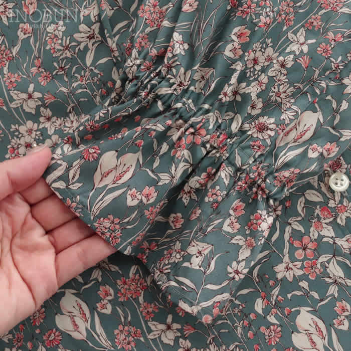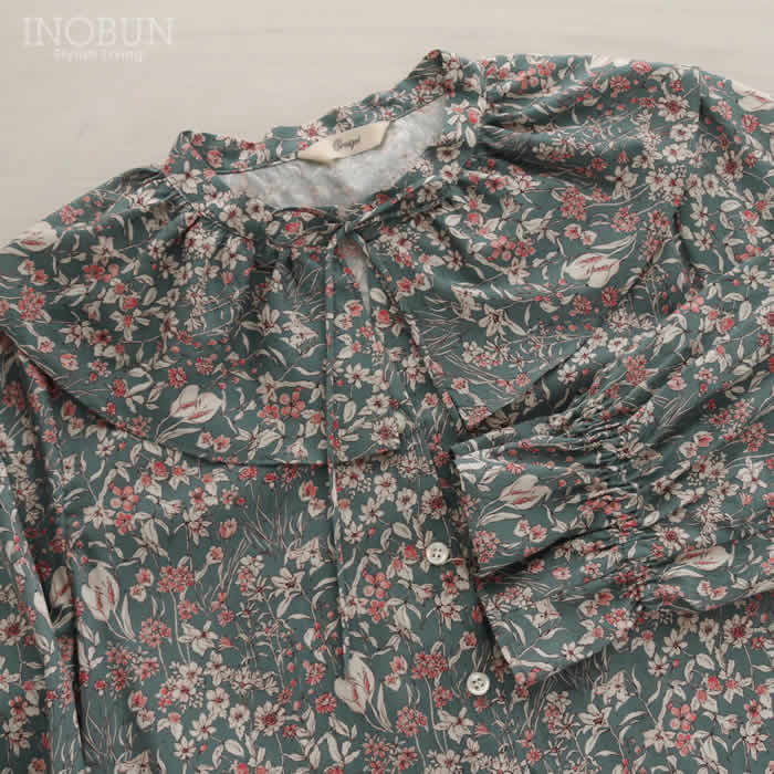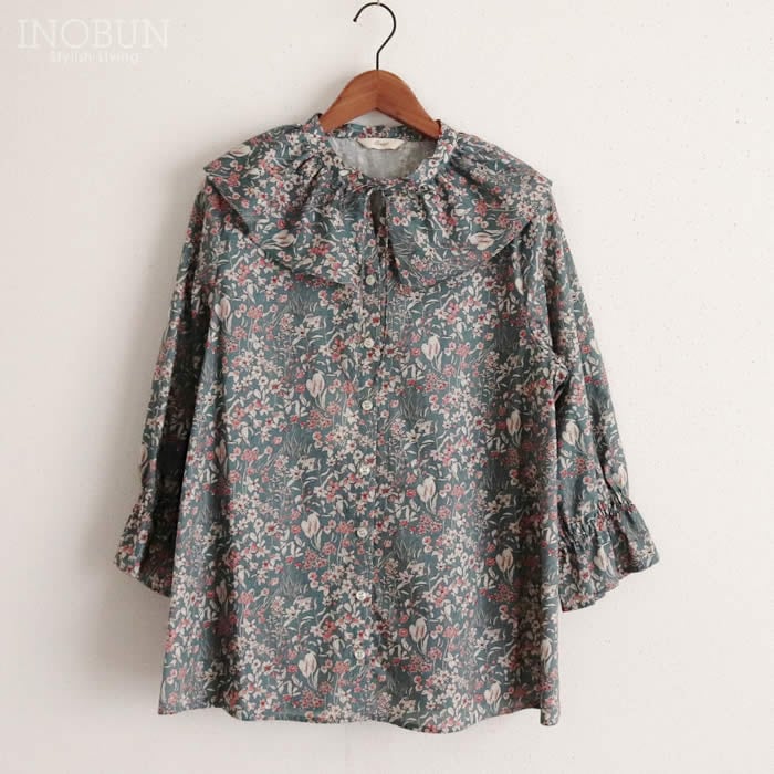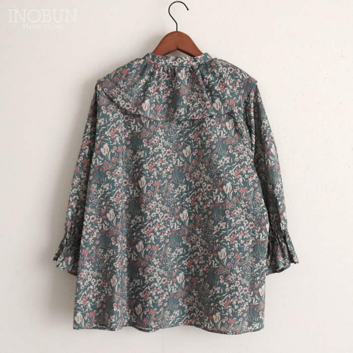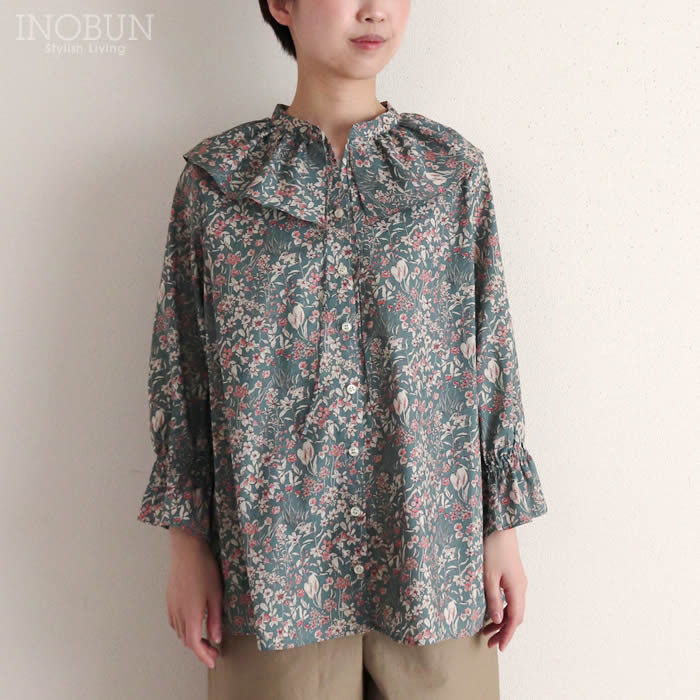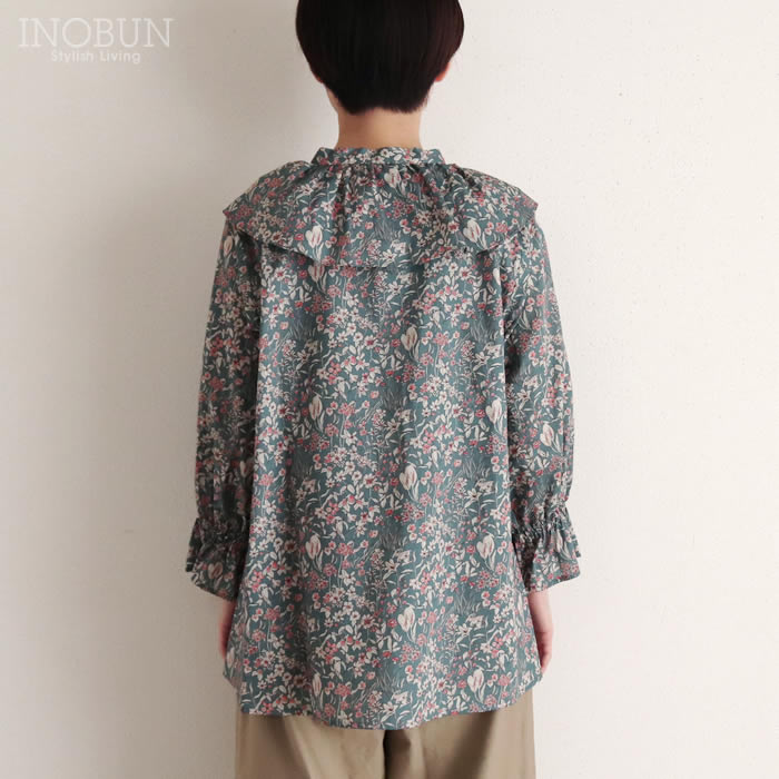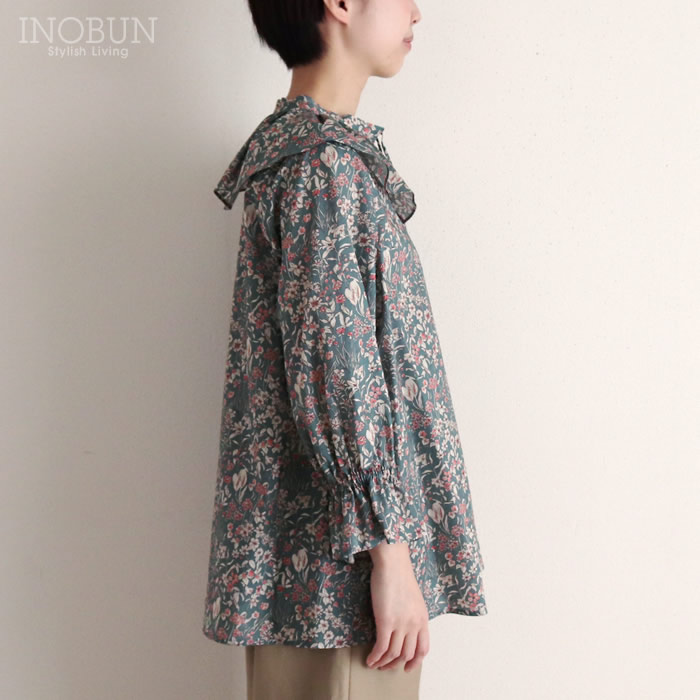Soldout 【再入荷予定なし】イノブン別注 Vent d'ouest リバティ 丸襟ギャザーブラウス Floral Ovation/BU 水色系 半袖 38サイズ ヴァンドウェスト