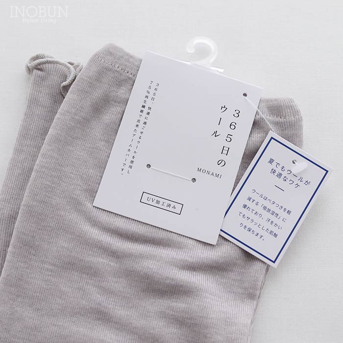 UVカット 365日のウール アームカバー ロング 灰 ライトグレー 指なし 手袋 シンプル おしゃれ