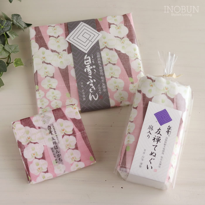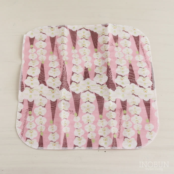 白雪 友禅染はんかち 胡蝶蘭 ピンク 白雪はんかち 30 x 30cm