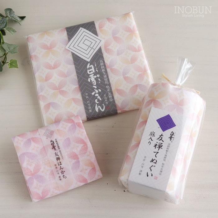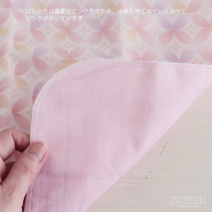 白雪 友禅染はんかち 七宝柄 桃花色 ピンク 白雪はんかち 30 x 30cm