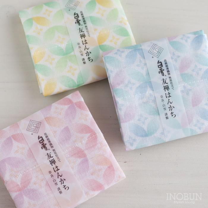 • 白雪 友禅染はんかち 七宝柄 桃花色 ピンク 白雪はんかち 30 x 30cm