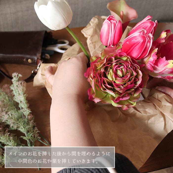 フラワーアレンジメント チューリップ&スイートピー 蛍光ブルー/くすみパープル オリジナルブーケ プレゼント