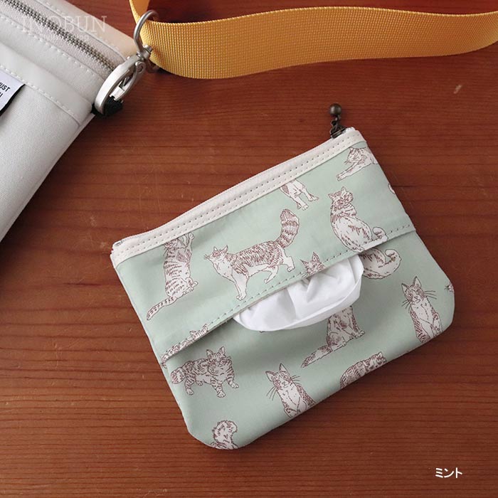【在庫限り終了】リバティ ティッシュポーチ 02 ミャオウ ミント フローレットロンドン コンパクト