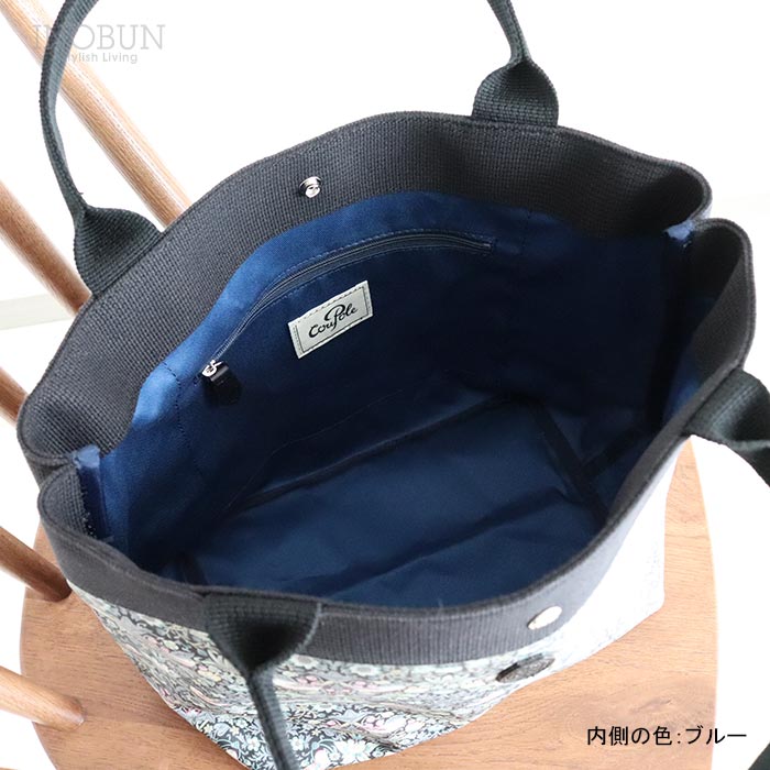 Coupole リバティ ブックバッグトート Yoshie/DE ネイビー マチなし A4対応 PVCコーティング 日本製 クーポール