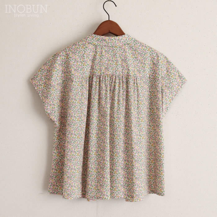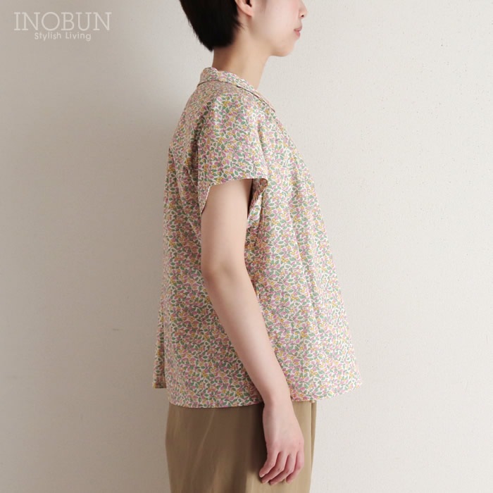 Soldout 【再入荷予定なし】イノブン別注 Vent d'ouest リバティ 丸襟ギャザーブラウス Poppy&Daisy/UE パープル系 半袖 38サイズ ヴァンドウェスト