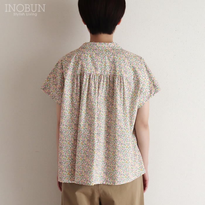 Soldout 【再入荷予定なし】イノブン別注 Vent d'ouest リバティ 丸襟ギャザーブラウス Floral Ovation/BU 水色系 半袖 38サイズ ヴァンドウェスト