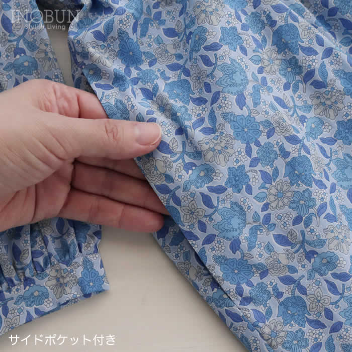 イノブン別注 Michel Beaudouin リバティ クルーネックワンピース ブルー系 五分袖 Swim Dunclare/VE サイズ1 ミシェルボードワン