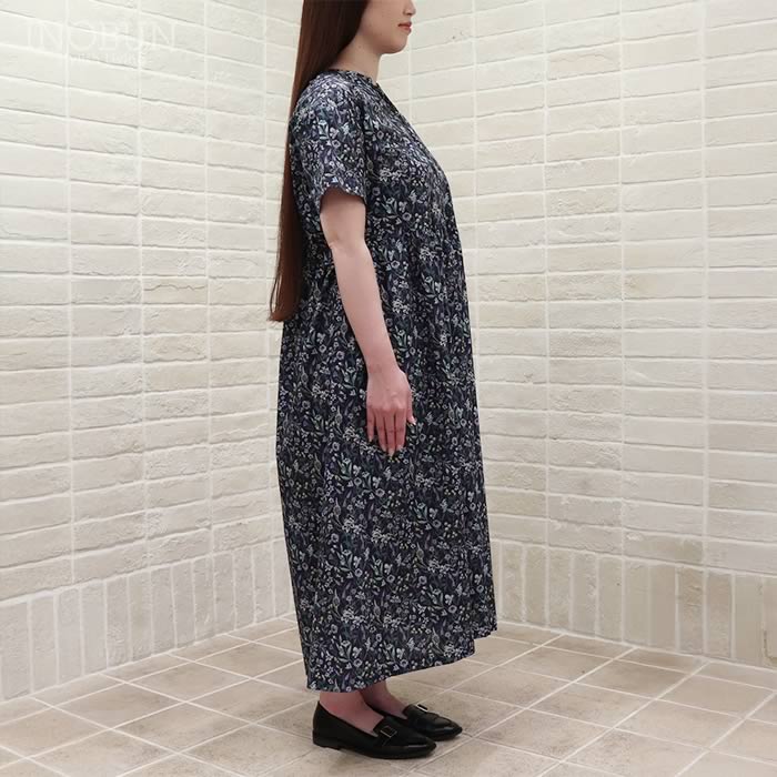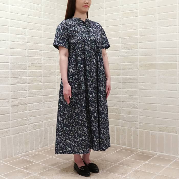 Soldout 【再入荷予定なし】J.Sloane リバティ 半袖ドロップショルダースタンドワンピース Mサイズ Mortimer/ZE モーティマー ウィリアムモリス ジェイスローアン