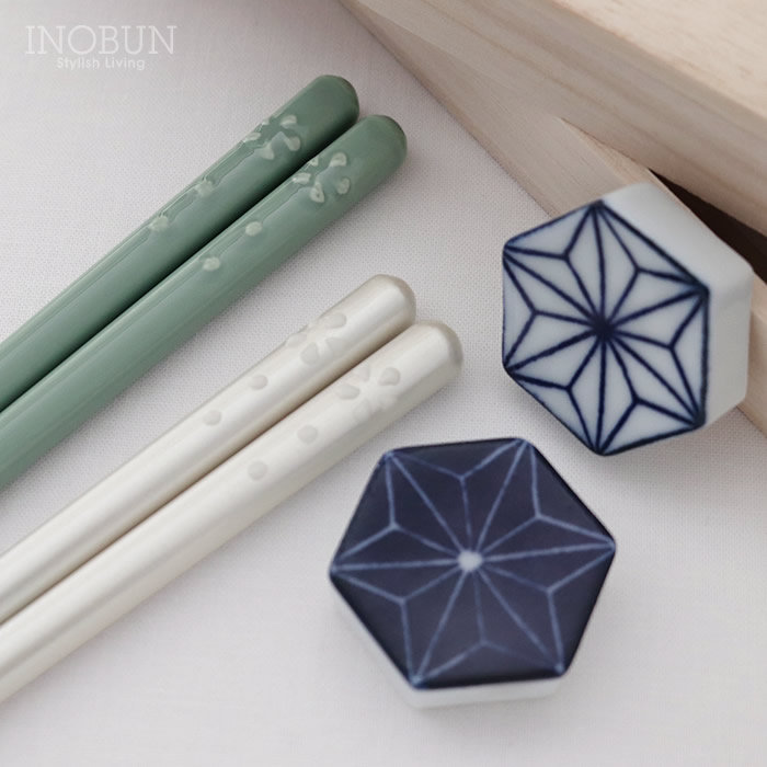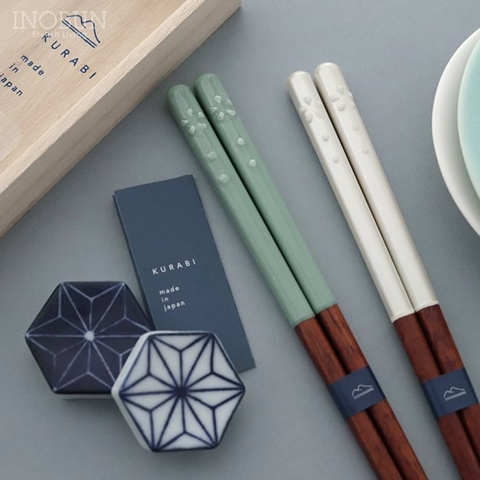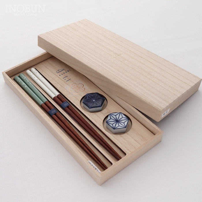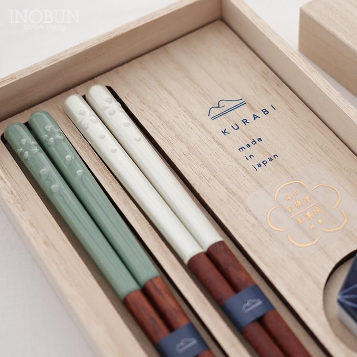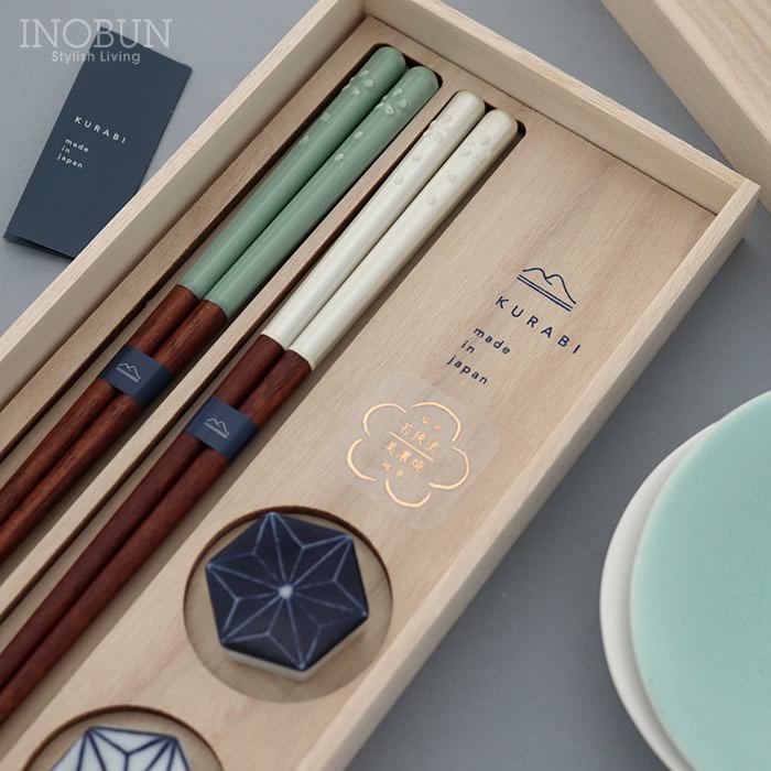 KURABI 箸置き揃え 夫婦箸 BOXセット 砂紋 若狭塗 美濃焼 日本製 ご結婚祝い 新生活 御祝い 食洗機対応