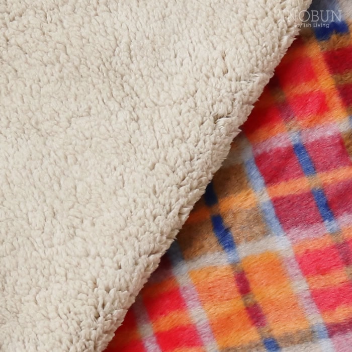 ブランケット レトロチェックファー L 大判サイズ 140 × 100cm レッド INOBUN オリジナル ギフト 温活