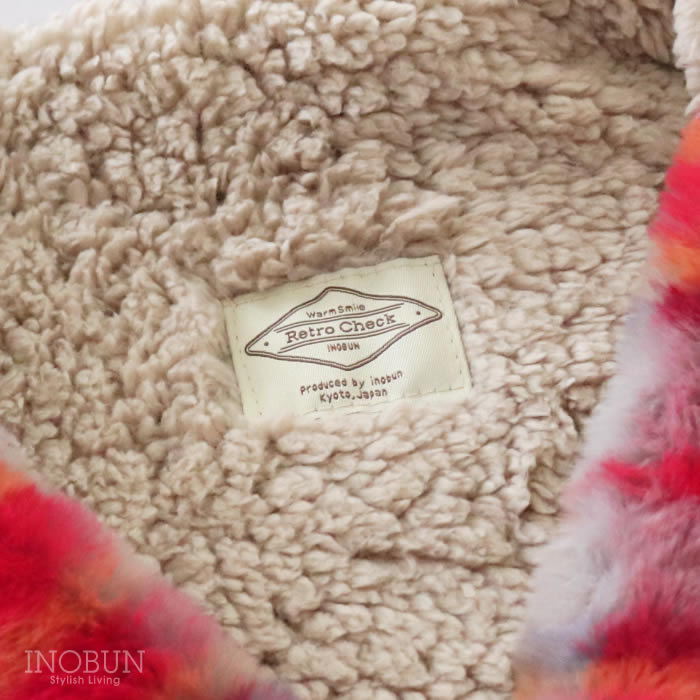 ケープブランケット レトロチェックファー レッド INOBUN オリジナル ギフト 温活