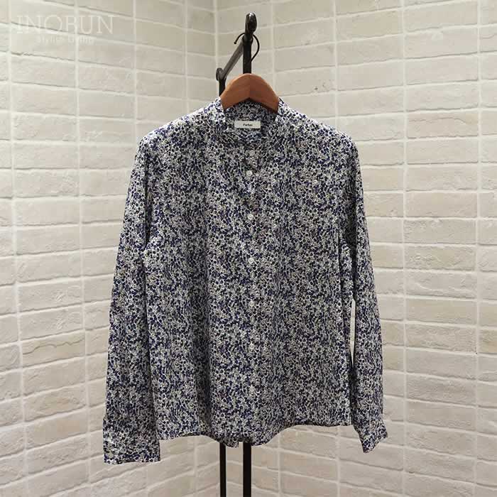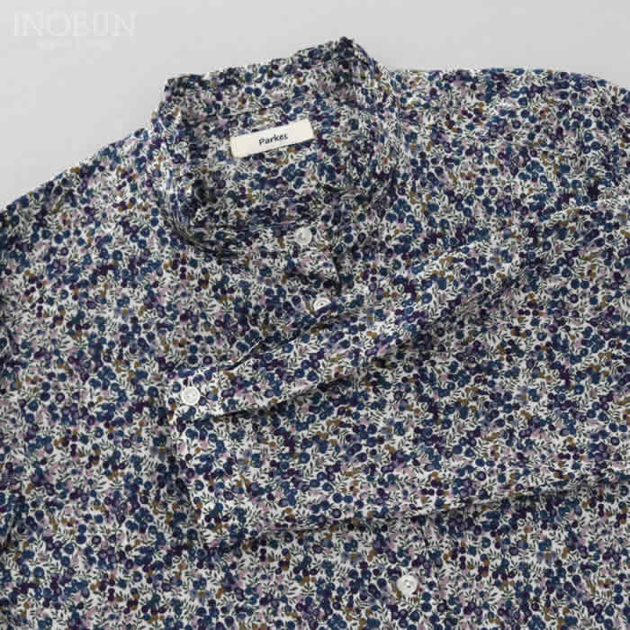 Soldout Parkes 北高 × リバティ バンドカラービッグシャツ Vincent/D ネイビー Mサイズ ブラウス LIBERTY パークス